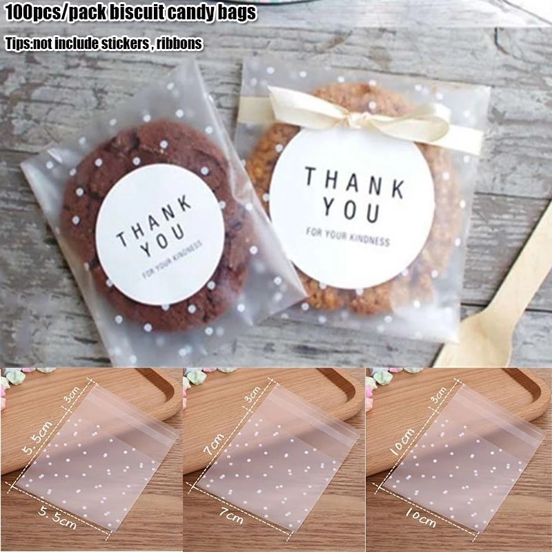 100pcs/set Food Grade Plastic Dessert Bag Cute Cookies Packing Bags