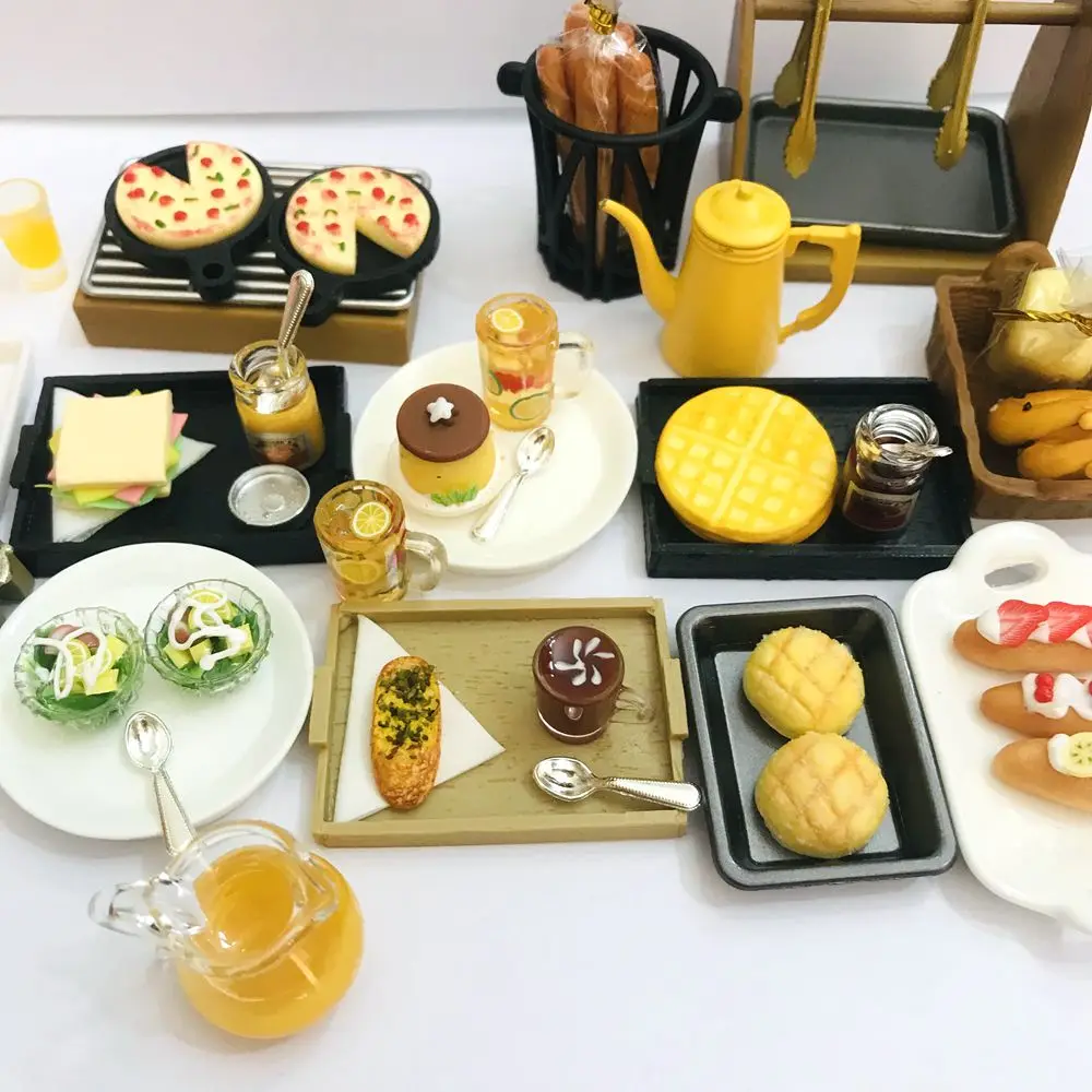 NEW 1/12 Dollhouse Miniature Breakfast Food Mini Bread Tart Fruit Salad Drink for Blyth Barbies OB11 BJD Doll House Decor Toys