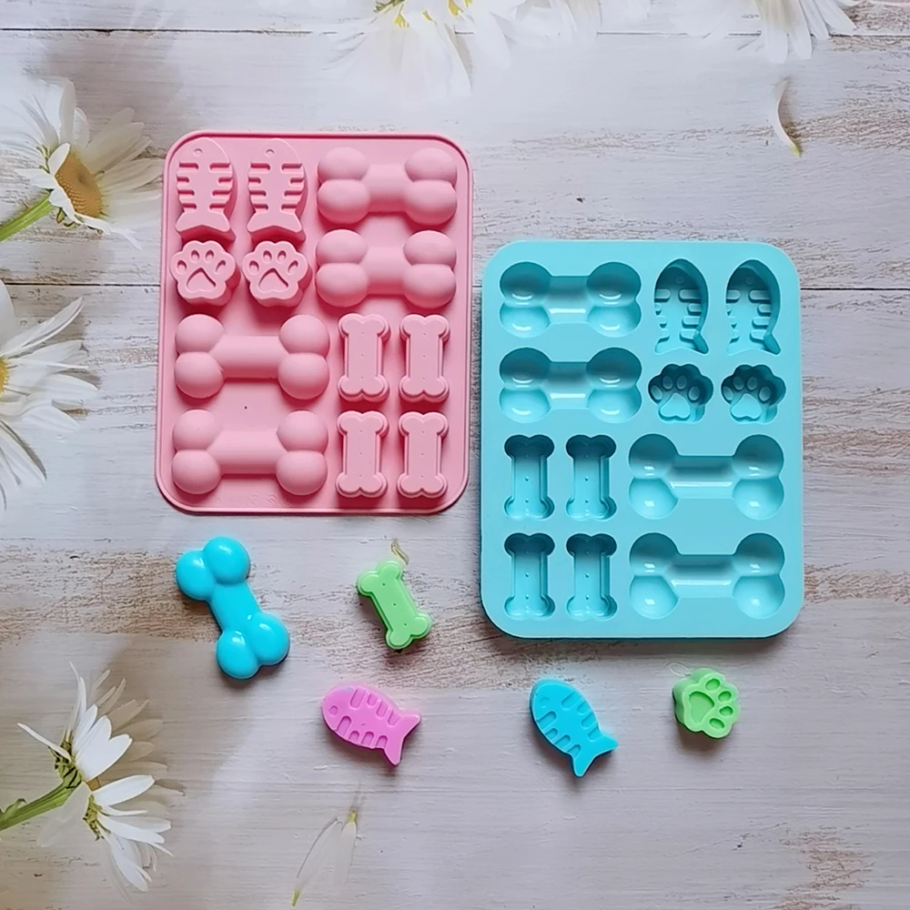 12 hole Cat Claw Bone and Fish Silicone Mold Ice Cube Candy Tray Food Grade Chocolate Cookies Baking Pan Pet Frozen Treats Mould