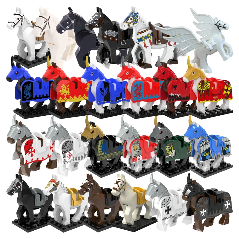 MOC Medieval Military Cavalry Action Figures War Horse Animals Building Blocks Rome Knight Warrior Weapons Bricks Kids Toy Gifts