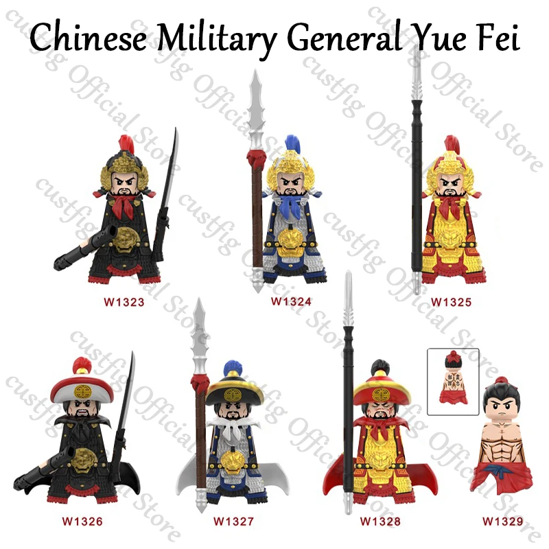 Ancient Chinese Hero Yue Fei General Military Armor Soldier Action Figures Building Block Sword Helmet Weapon DIY Brick Toy Gift