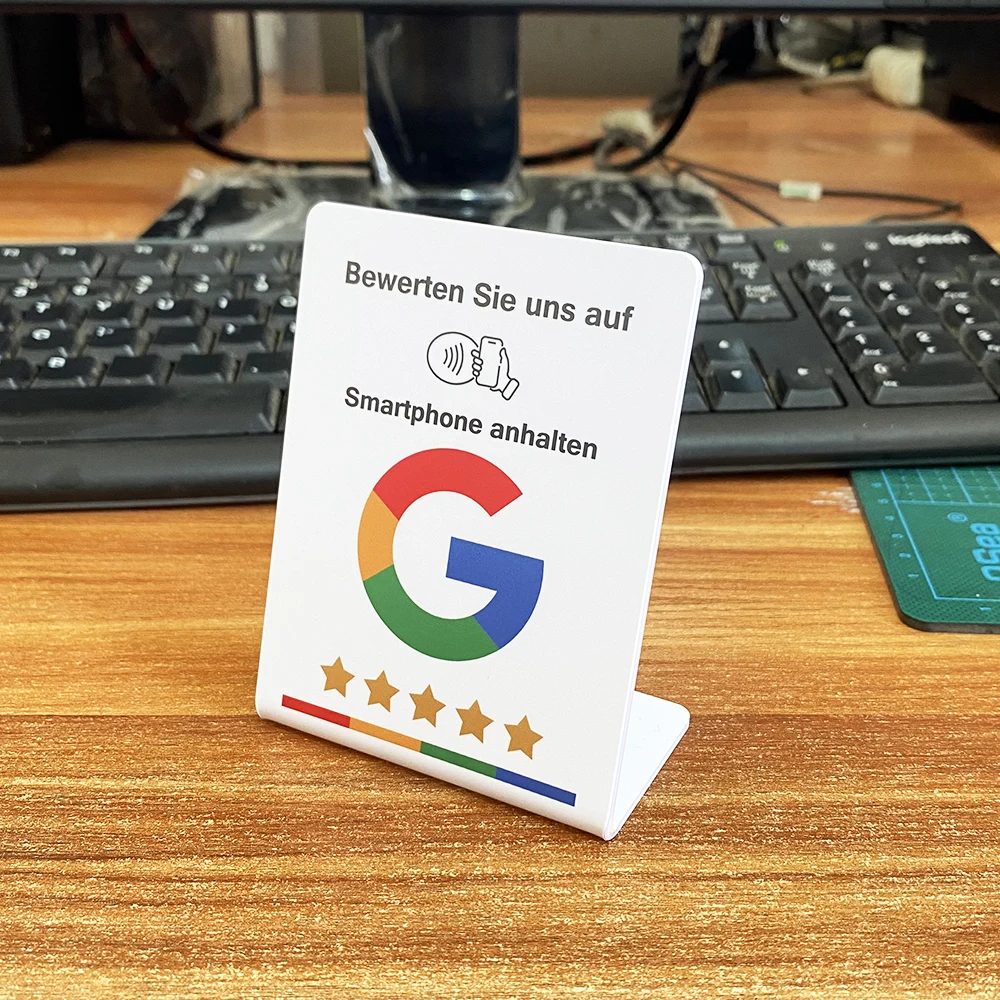 3"X4"NFC Tap Stand German French Spanish English 4 Version Google Review NFC Stand NFC Table Display for Restaurant