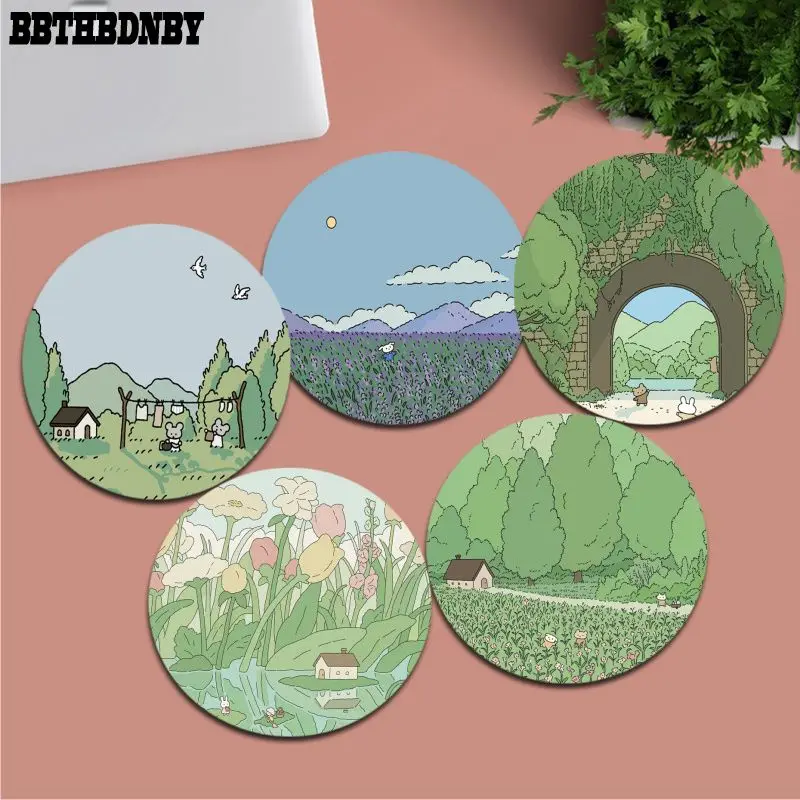 Cute Green Plant Anti-Slip Round Cabinet Gaming Laptop Computer Desk Mat Office Notbook Mouse Pad Mouse Mat Deskpad Home Decor  Read more