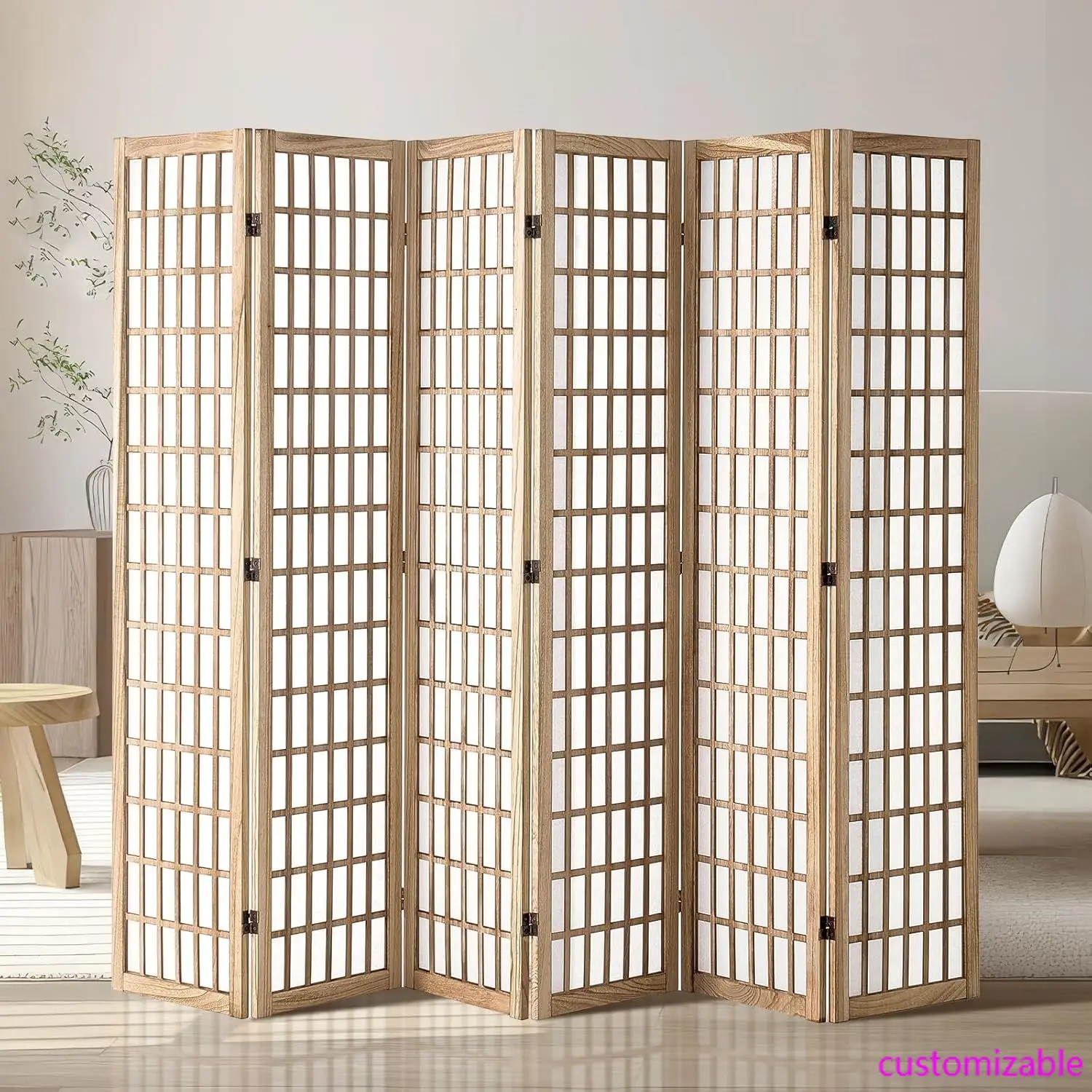 Room Divider, 6 Panel Japanese Room Divider, Wood Folding Privacy Screen Indoor, Partition Dividers Portable Decoration Screens