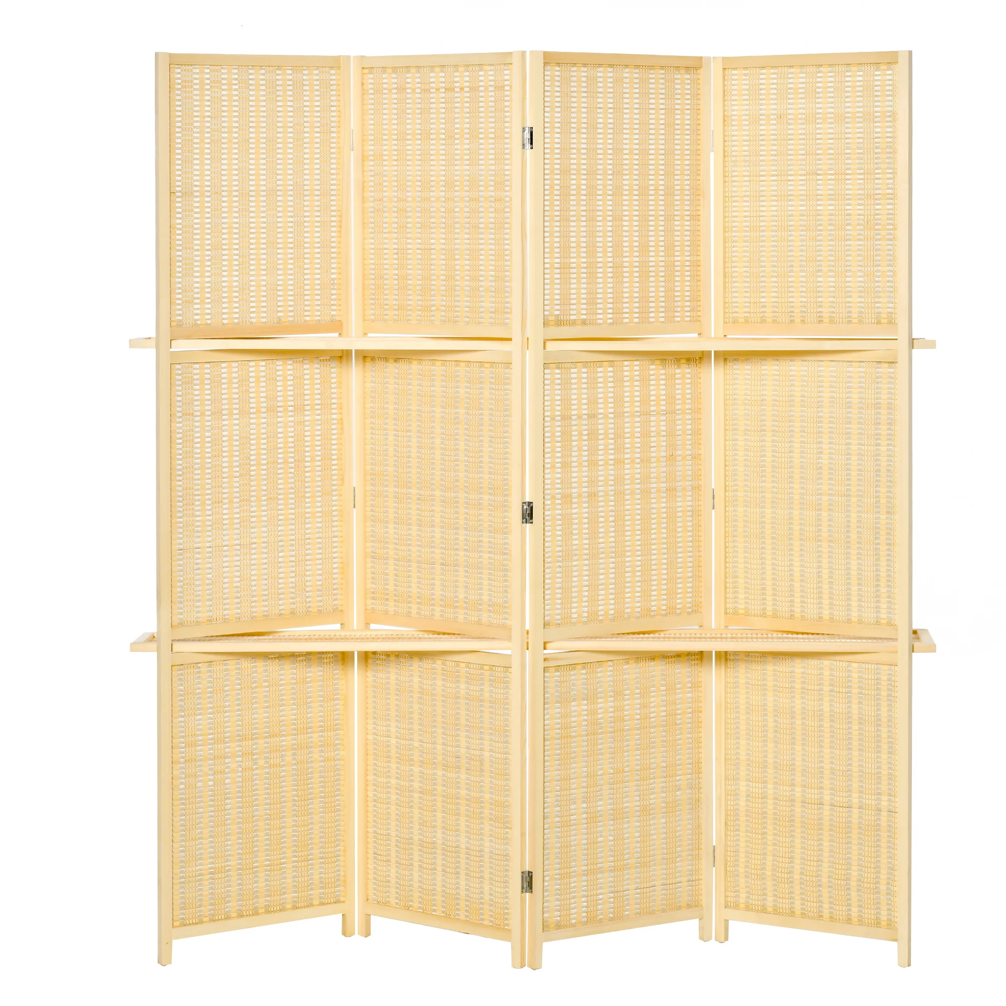 6' Folding Privacy Screen Indoor Room Divider w/ 2 Open Display Shelves, Natural