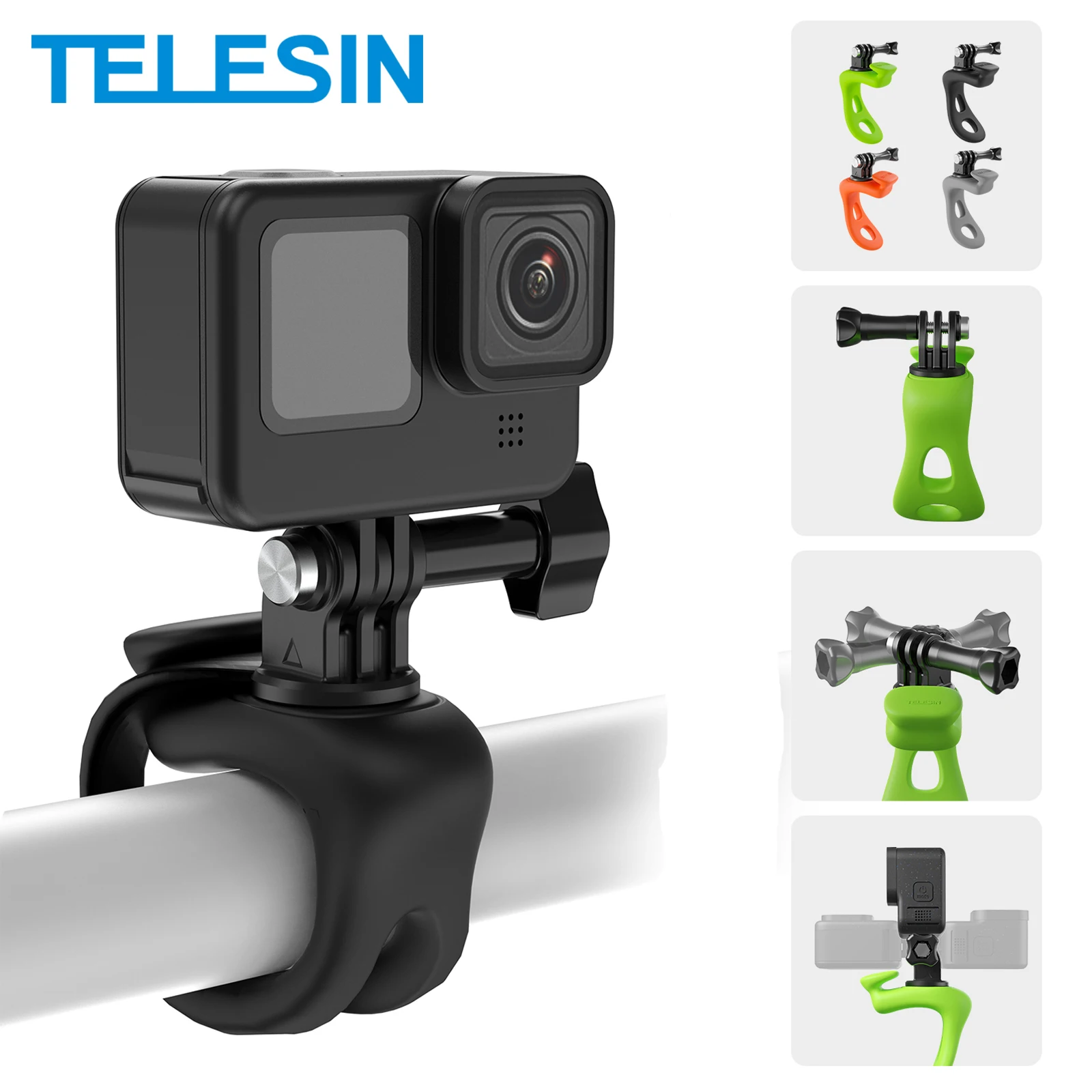 TELESIN Action Camera Mount Silicone Adjustable Mini Flexible Bracket For Gopro Insta360 DJI Action Camera Accessories