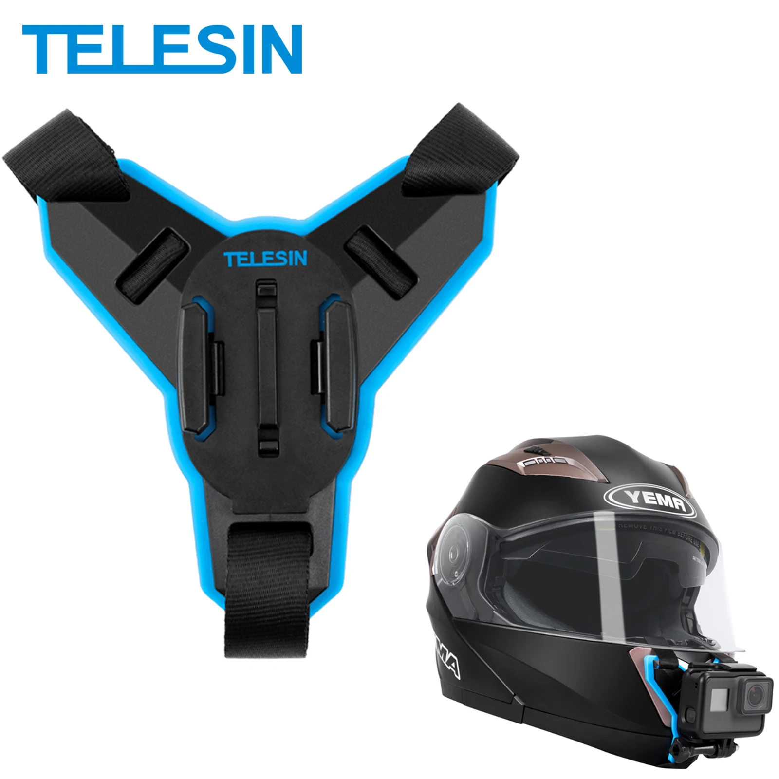 TELESIN Motorcycle Helmet Strap Mount for GoPro Hero 13 12 11 10 9 8 7 Black Insta360 DJI OSMO Action Helmet Holder Accessories