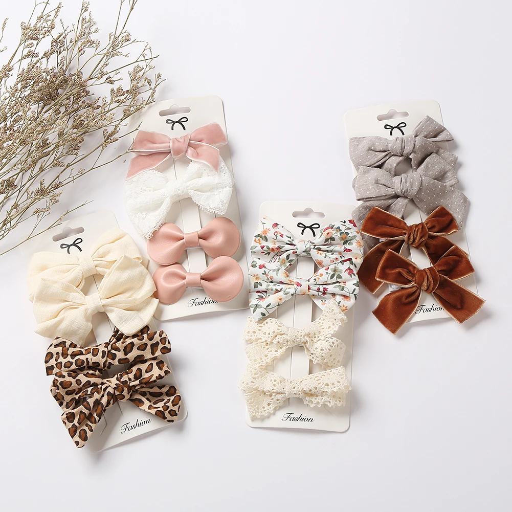 4Pcs/set Floral Print Hair Bow Clips Baby Girls Lace Cotton Linen BB Barrettes Safety Hairpins Korea Kids Headwear Accessories  Read more