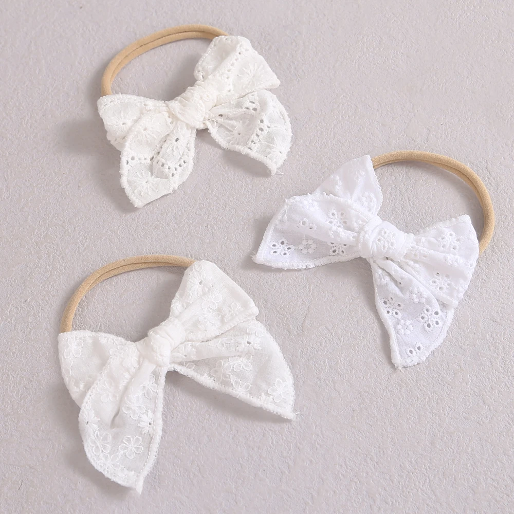 Headband for Baby Girls White Soft Lace Hair Bows Elastic Soft Seamless Hairband Newborn Kids Headwear Baby Hair Accessories