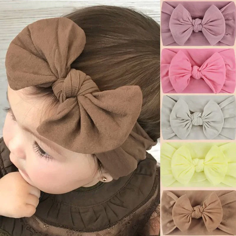 Lovely Newborn Baby Headband for Girls Elastic Knit Children Baby Bows Soft Nylon Kids Headwear Hair Accessorie Bandana  Read more