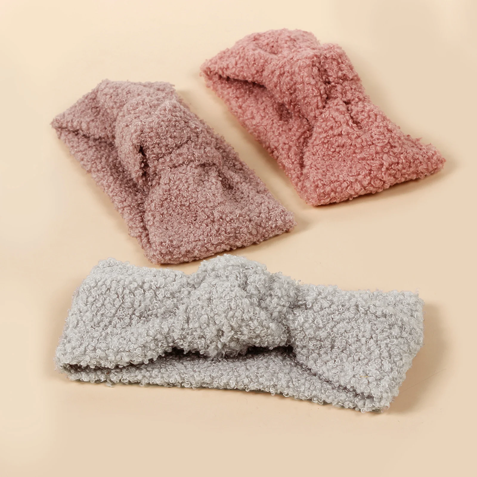 1pcs Cute Autumn Winter Girls Coral Fleece Single Knot Elastic Headbands Baby Solid Color Cashmere Headbands Girls Teddy Turbans