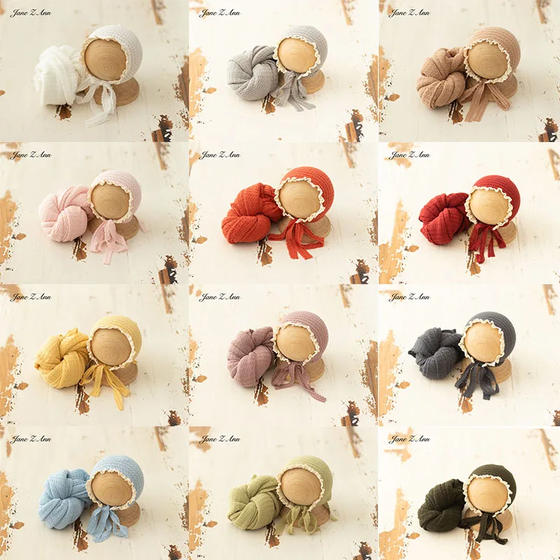 Patterned wrap 140x40cm with floral lace hat infant set for newborn photography studio shooting multi colors