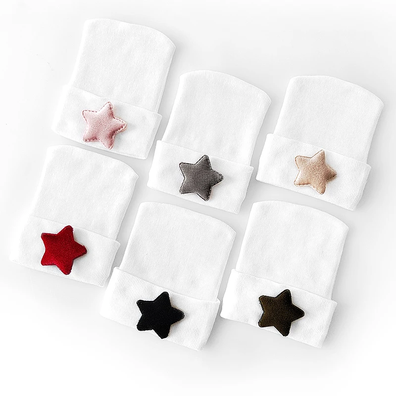 Newborn Velvet Star Heart Hospital Hats Baby Boys Girls Soft Cotton Kint Leopard Star Beanies Kids Child Baby Props Hat