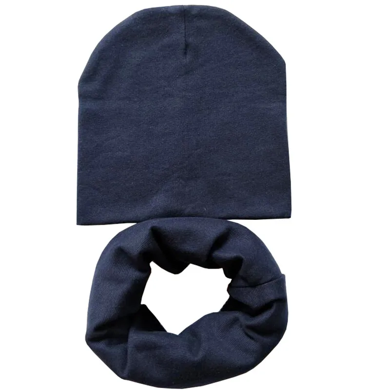 For 4 To 12 Years Old Solid Color Cotton Baby Hat Scarf Set Autumn Winter Boys Girls Beanies Cap Outdoor Warm Baby Hat Cap Set