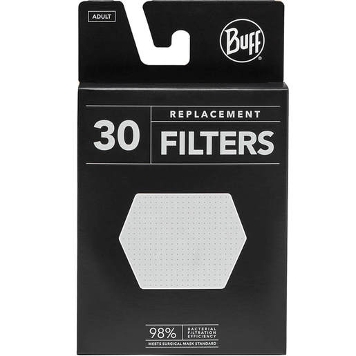 Buff Adult 30 Pack Mask Replacement Filters - 30 Pack of replacement filters for the BUFF® Filter Mask. Highly breathable to guarantee your comfort throughout the day. Not intended for medical use Filters offer 98% bacterial filtration efficiency...