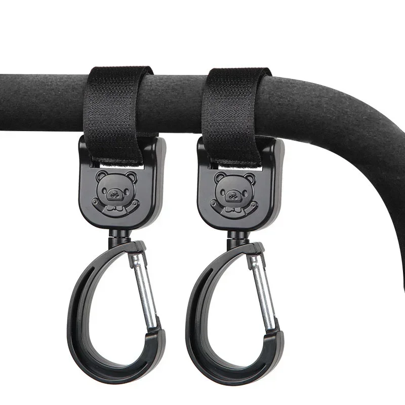 360 Degree Cart Organizer Storage Bag Baby Pram Hooks Rotate Hanging Bag Hanger Universal Outdoor Stroller Accessories