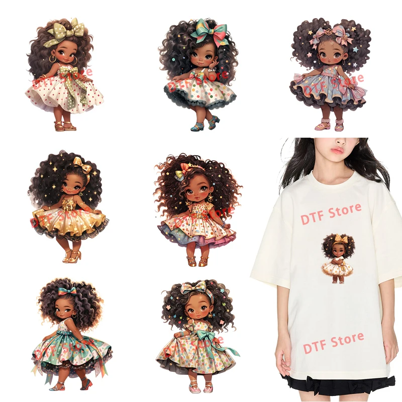 Beautiful black little girl DTF Heat Transfer patch for clothing, used for Children's clothing ironing applications