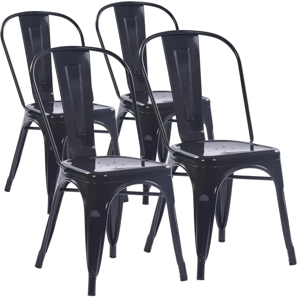 Metal Dining Chairs Set of 4 Iron Stackable Removable Back Cafe Side Patio Chairs Rubber Feet Stylish Modern Indoor