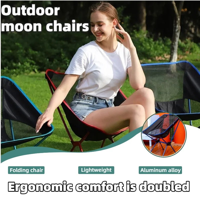 Portable Outdoor Moon Chair Camping Folding Chair Ultra-Light Aluminum Alloy Leisure Backrest for Backpacking Beach Garden Use