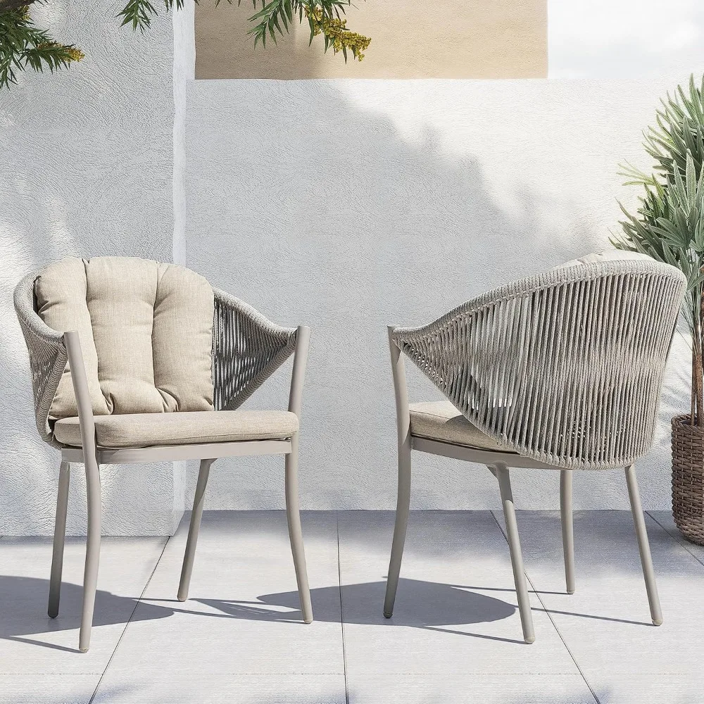 "2-PC Woven Rope Dining Chairs - All-Weather Aluminum with Cushions, for Garden/Deck/Indoor/Outdoor"