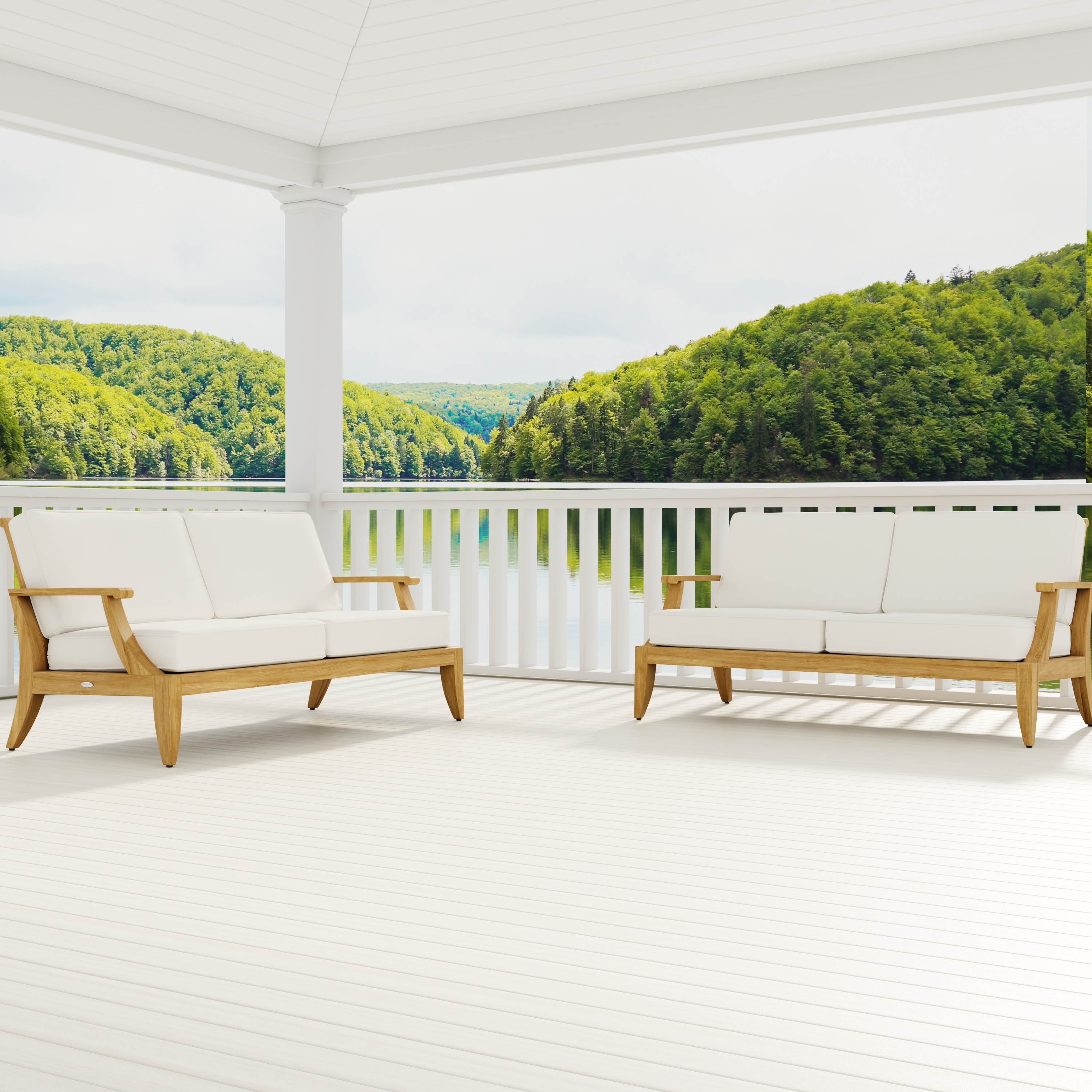 "Part of the Laguna Collection with deep seating cushions on solid Grade A Teak frame. Cushions made with Quick Dry Foam core and Sunbrella fabrics. Teak harvested from renewable plantations in Indonesia."  Read more