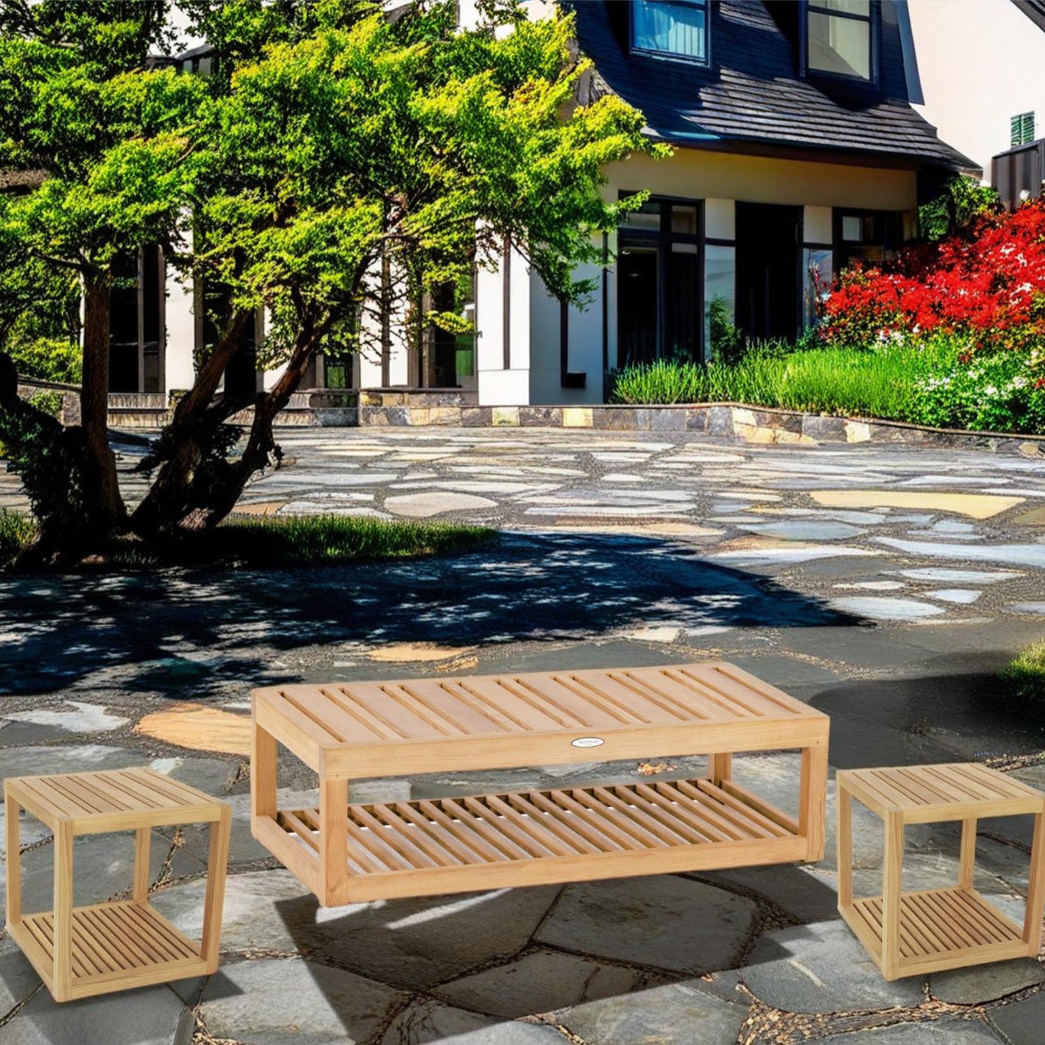"Modular 3 piece Teak Coffee and End Table Set and Lounge Seating. Sunbrella Cushions Included. Teak Sofa cushions available in over 95 colors."  Read more
