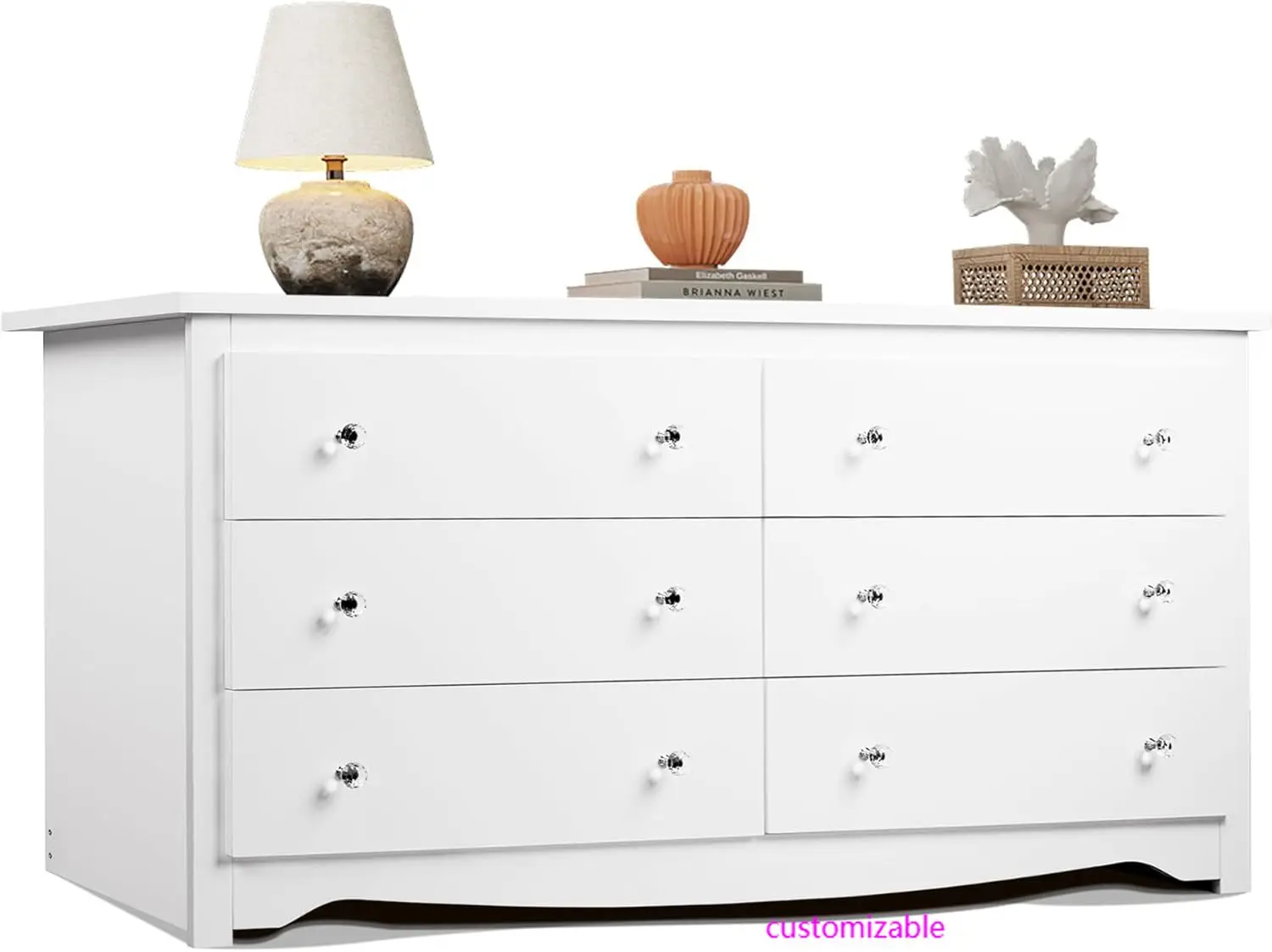 Wood White Dresser with 6 Drawer, Wide Chest of Drawers for Bedroom, Long Nightstand with Drawers
