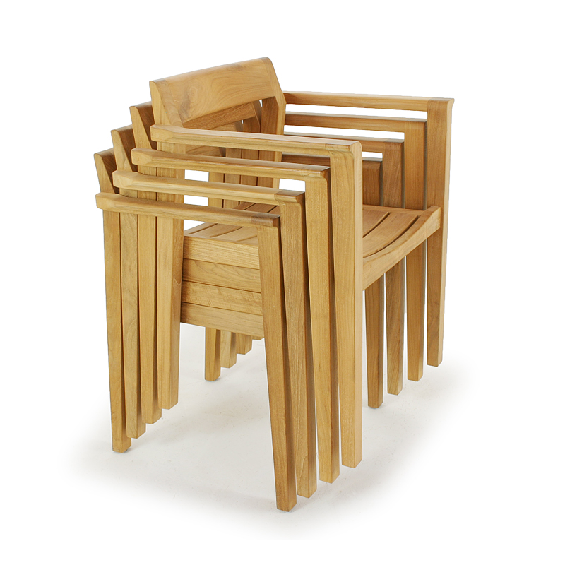 4 pc Horizon Teak Stackable Dining Arm Chair Set