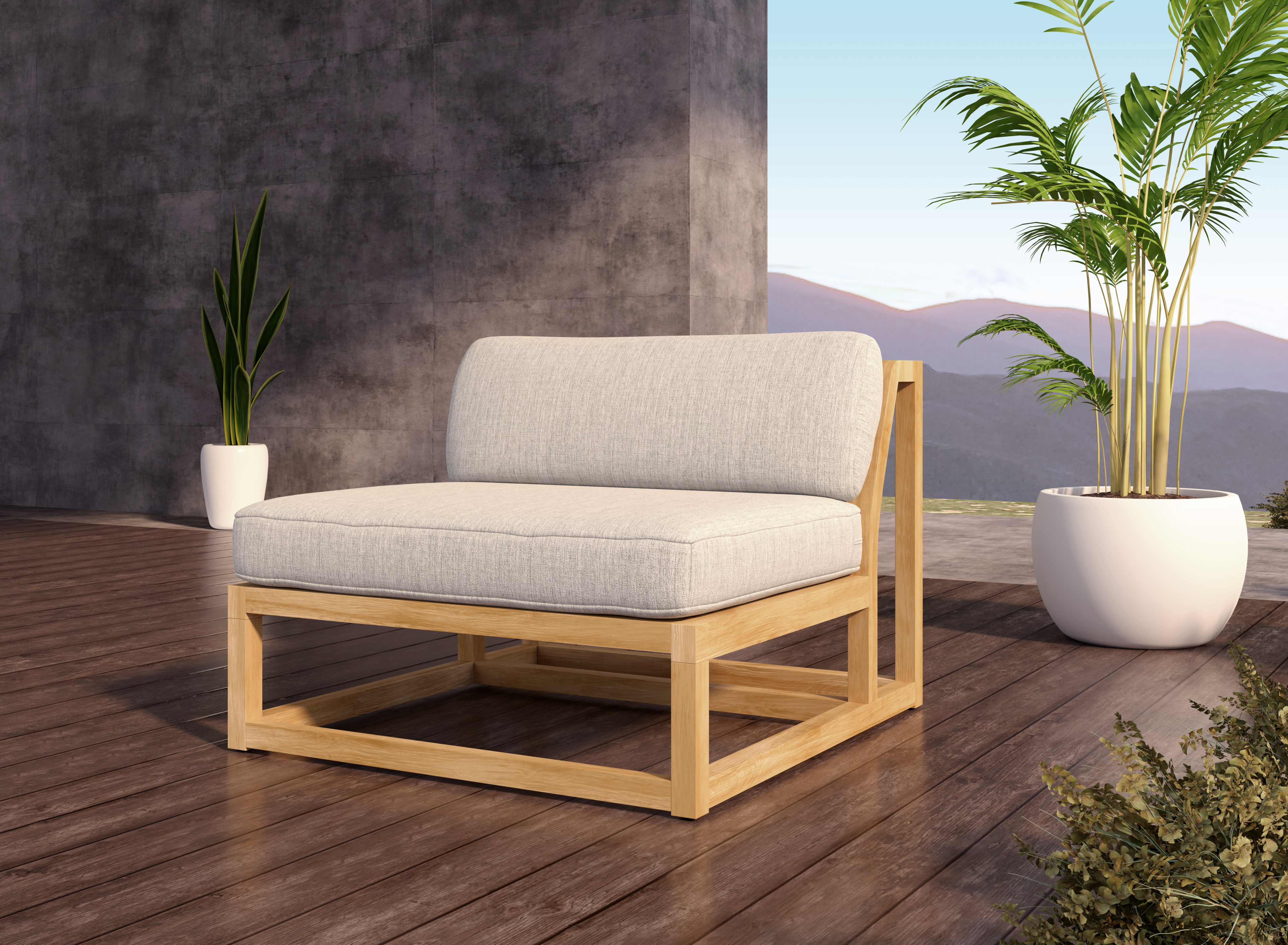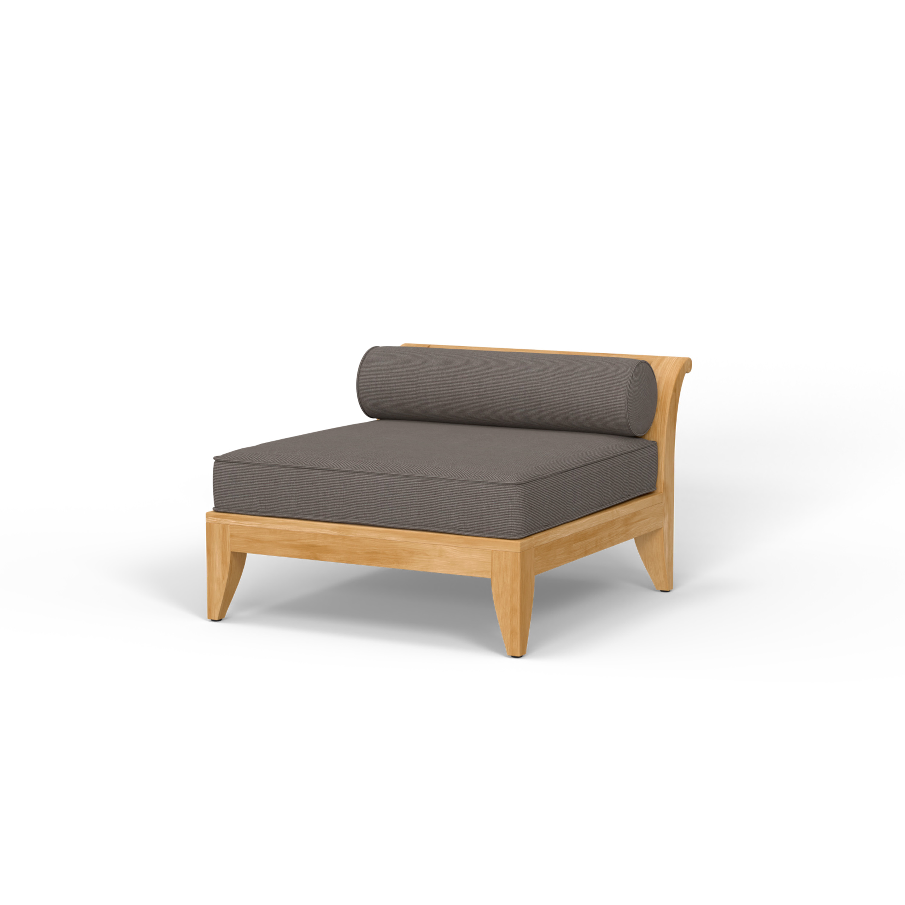 "The Aman Dais End Unit is a teak sectional piece that is a component of our Aman Dais modular collection. Crafted with SVLK Certified Grade A Teak harvested from sustainable plantations in Indonesia. Cushions are made of Premium Sunbrella Fabric."  Read more