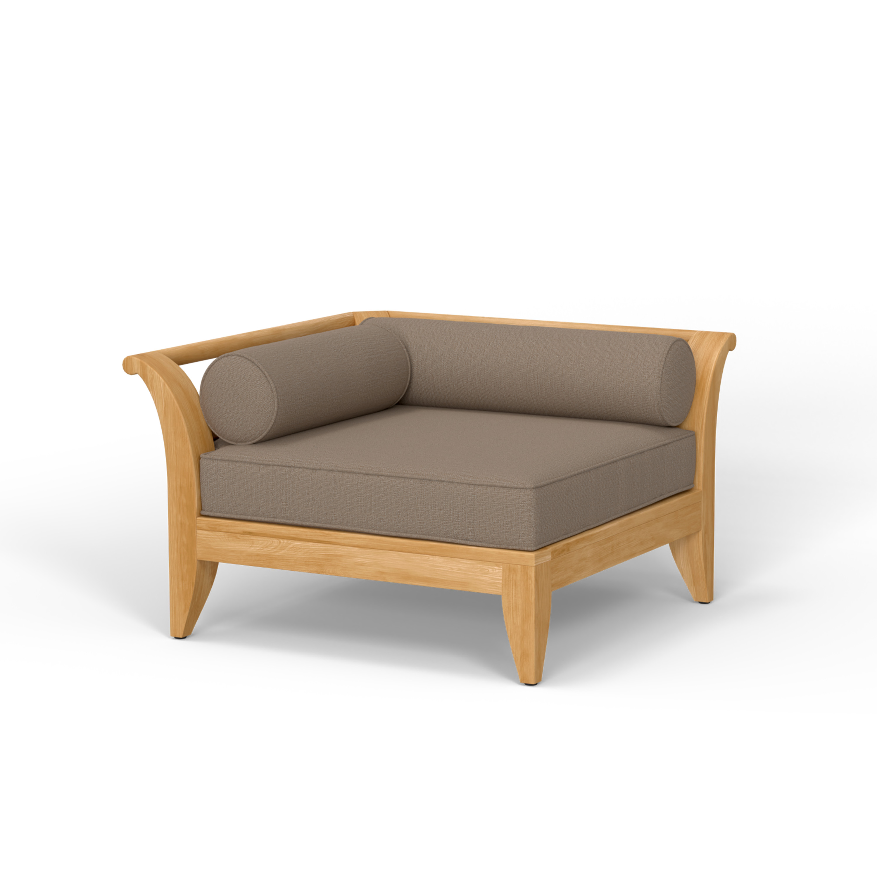 "The Aman Dais Corner Unit is a teak sectional piece that is a component of our Aman Dais modular collection. Crafted with SVLK Certified Grade A Teak harvested from sustainable plantations in Indonesia. Cushions made with premium Sunbrella fabric."  Read more