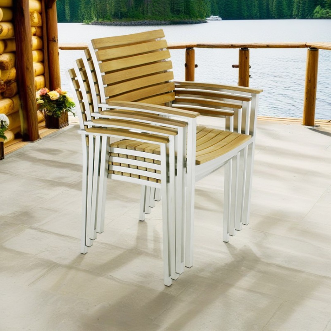 "Vogue Teak and Stainless Steel Stackable Chairs can go up to 4 high for storage."  Read more