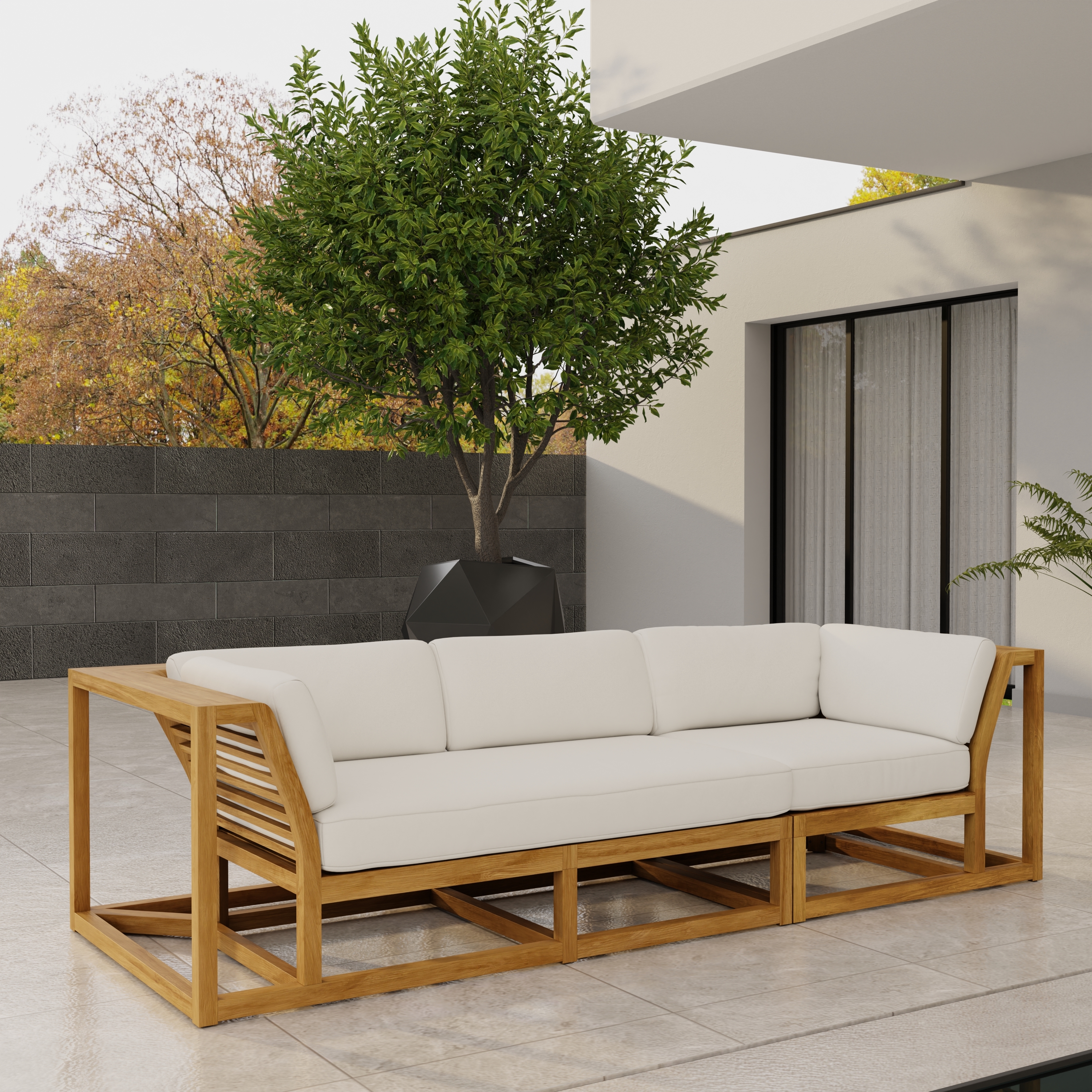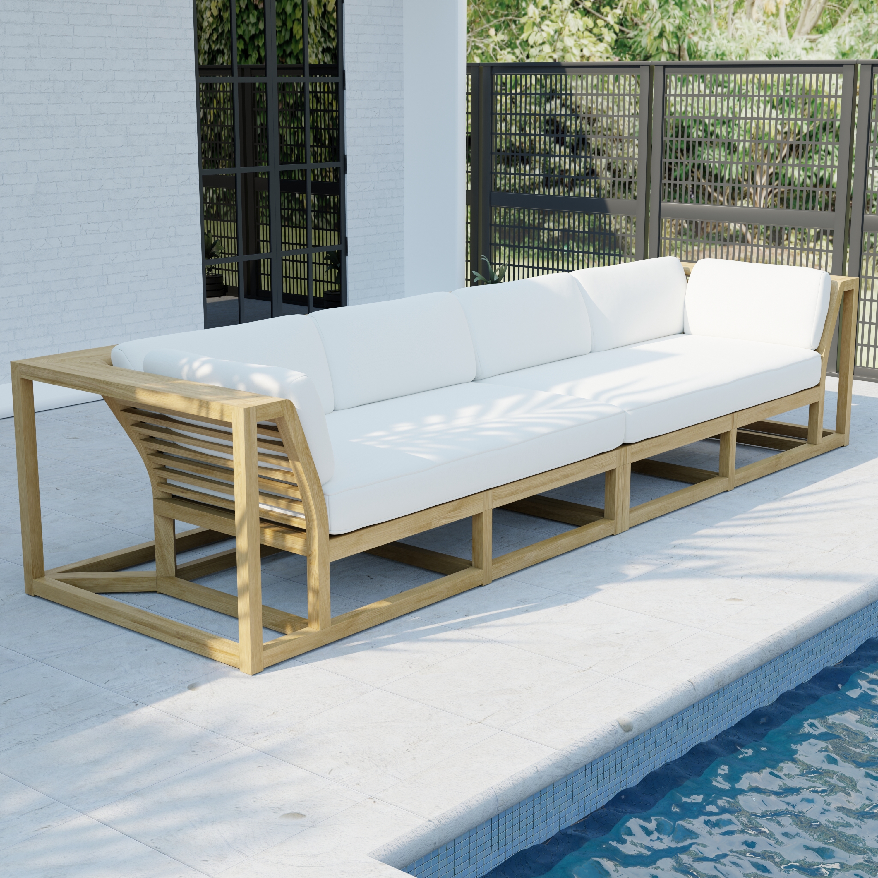 "Maya Large Designer Teak Sectional Sofa Set. Made with Grade A Teak from renewable plantations in Indonesia. Deep seating cushions made with Quick Dry Foam core and solution dyed Sunbrella fabric. Rated Best Overall by Wall Street Journal."  Read more