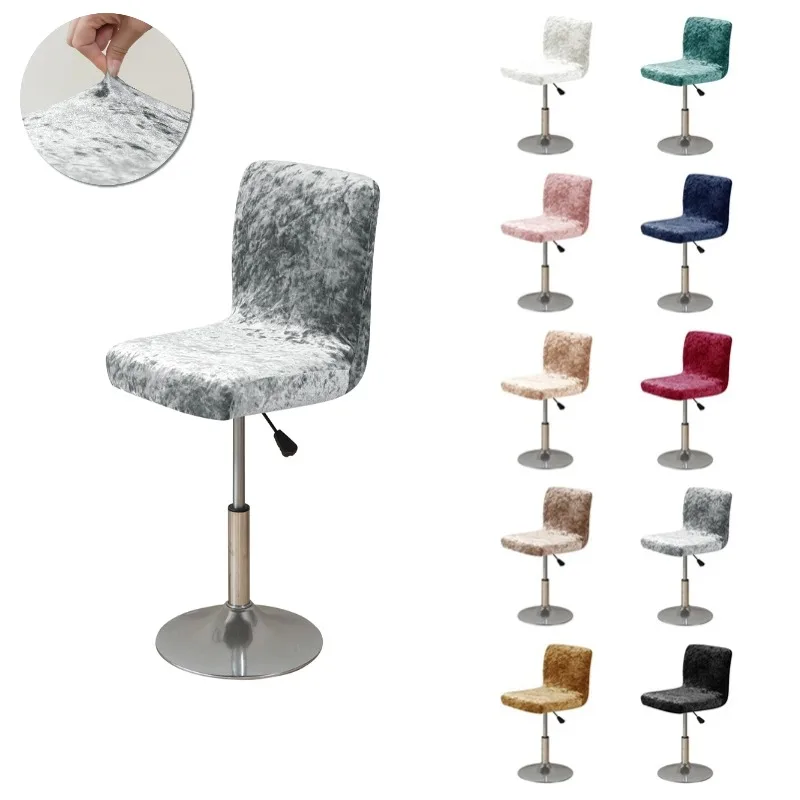 1PC Velvet Bar Chair Cover Stretch Classic Style Armless Chair Covers Solid Colour Short Back Seat Cover for Dining Room Banquet