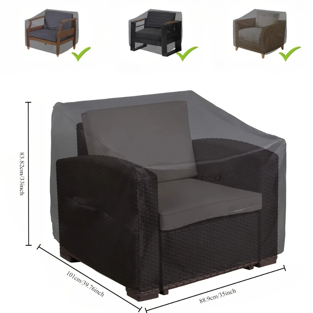 Durable Black Outdoor Chair Cover - Waterproof Terrace Furniture Protective Cover for Deep Seat Leisure Chairs