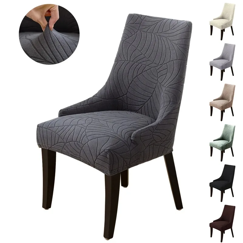 Leaves Jacquard Sloping Dining Chair Cover High Back Armchair Covers Elastic Seat Covers for Living Room Office Hotel Wedding
