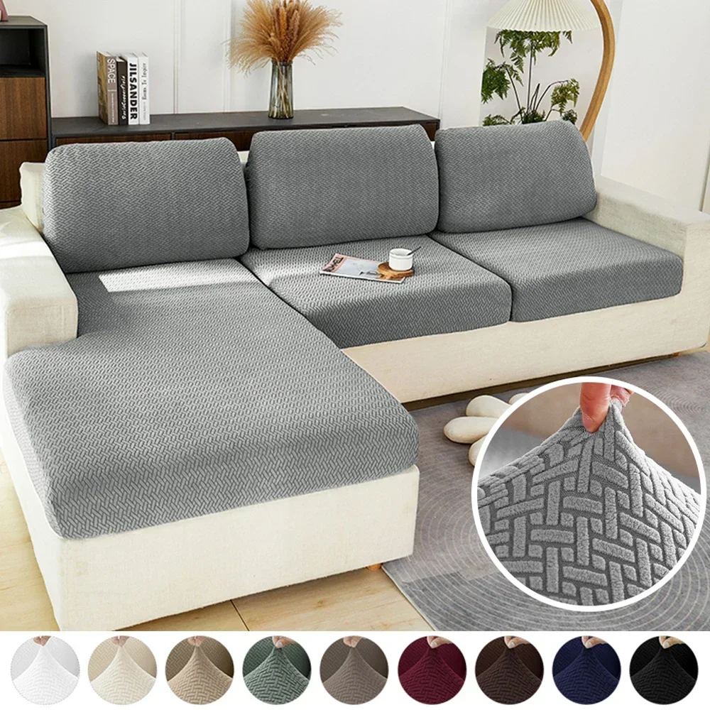 Elastic Sofa Cover for Living Room Jacquard Solid Sofa Seat Cover Grey Washable Seat Cushion Cover Furniture Protector Sectional