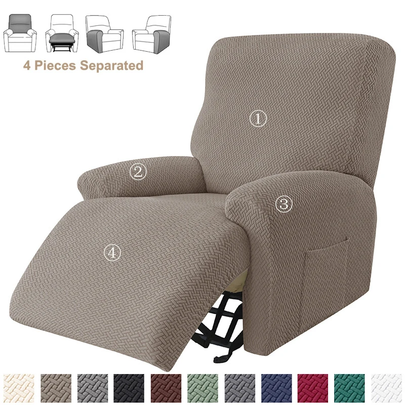 4Pcs Split Jacquard Recliner Sofa Covers Elastic Armchair Chair Cover Non-Slip Recliner Chairs Slipcovers for Living Room Decor