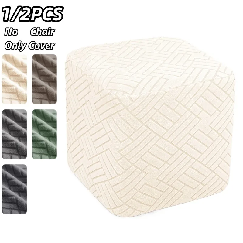 Classic Jacquard Square Footstool Cover Durable Polyester Stretch Washable Ottoman Cover Solid Color Home Decor for Living Room