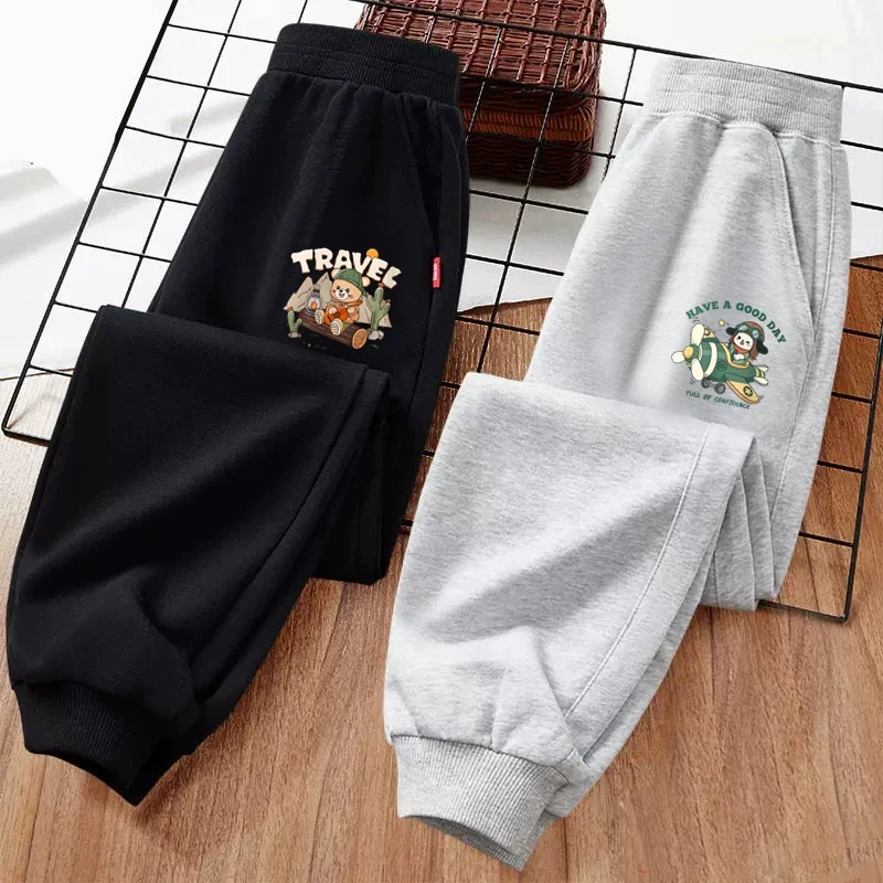Little Bear Cartoon Long Pants for Children Spring and Autumn Sports Trouser Baby Boys Girls Cotton Sweetpants 3-14T