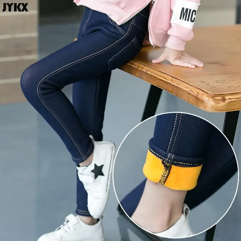 Children's Pants Winter Clothes New Thicker Middle-aged Kids 'Jeans Korean Style Stretch And Cashmere Girls