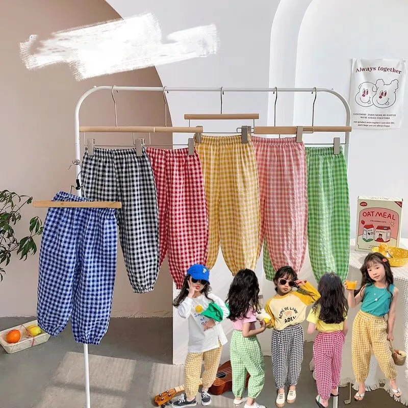 Spring Summer New Mosquito Proof Pants Baby Pants Thin Loose Cotton Plaid Pants Outer Wear Kids Fashion Sports Casual Trousers