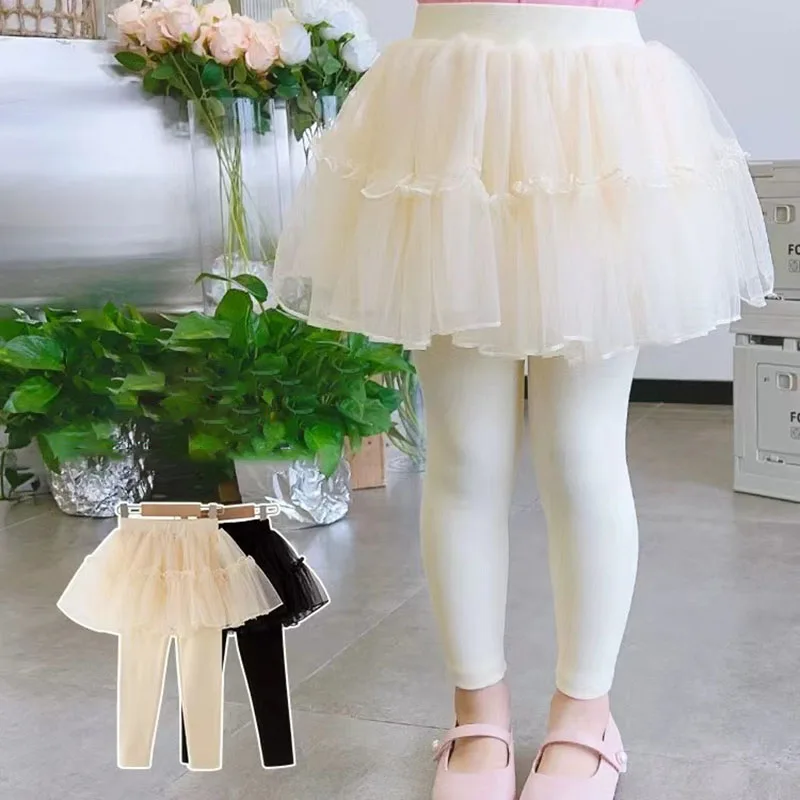 Kids Autumn Leggings Children Cute Thin Style Yarn Skirt Kids Solid Color Bow Skinny Pants