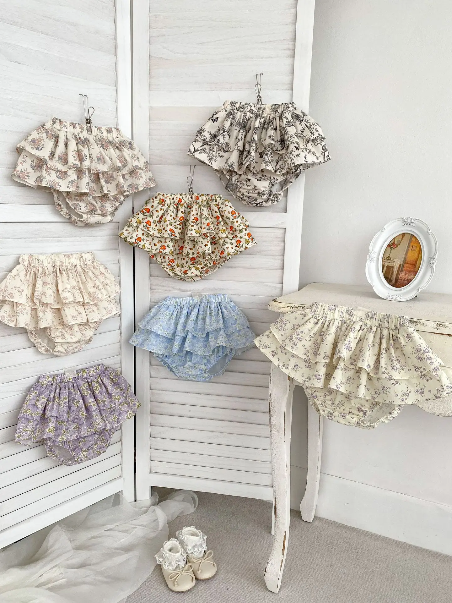 2024 Summer New Baby Girls Floral Bloomer Infant Cute Flower Fluffy Buttocks Pants Toddler Outwear shorts