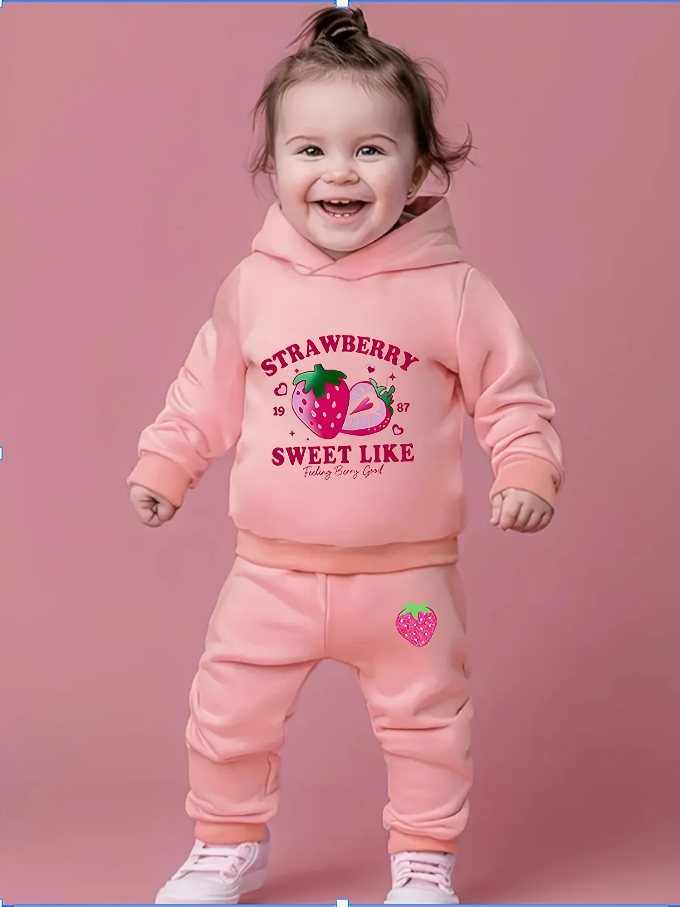 Newborn Cute Print Fleece Sweatshirt And Fashion Sporty Casual Pants Set Autumn Winter Gift Suitable for Outdoor