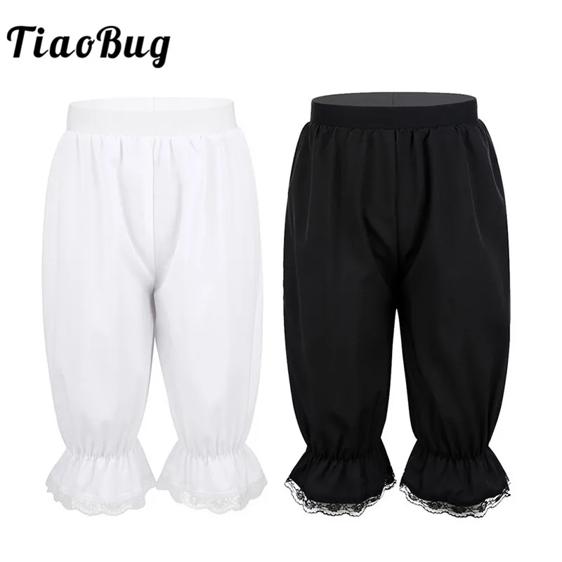 TiaoBug Kids Solid Color Quick Drying Lightweight Loose Lace Trim Bloomers Comfy Elastic Waistband Pants for Girls Dance Costume
