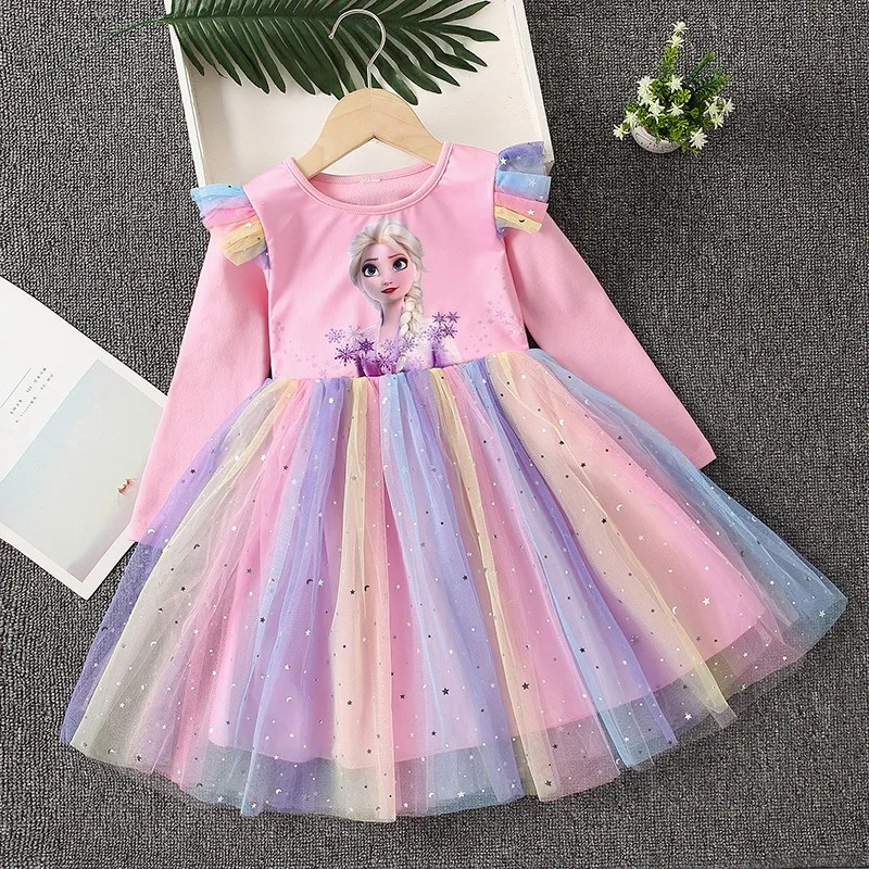 New Princess Dress Girls Dress Long-sleeved For Children's Party Clothes Elsa Frozen Dress Spring Autumn Kids Dress 2-9Y