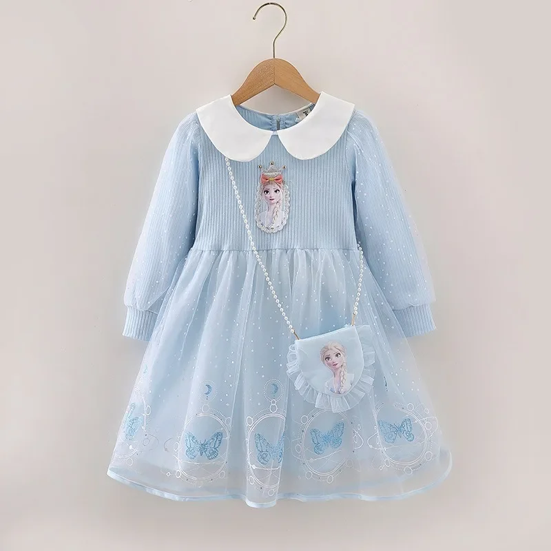 New Disney Elsa Princess Dress Baby Girls Dress Kids Dress Party Long-sleeved For Children Frozen Formal Evening Dress 3-8Y