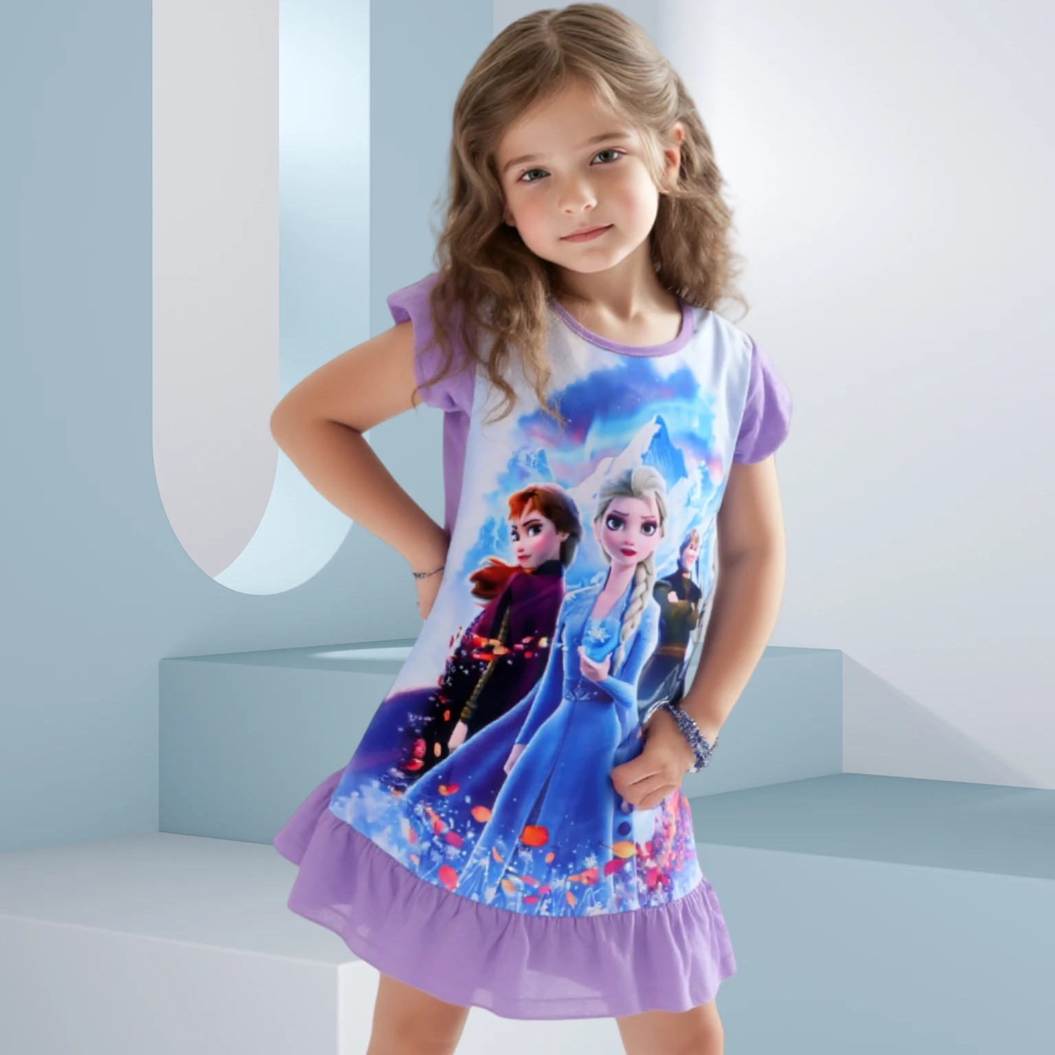 3-8Yerars Girls Frozen Elsa princess dress Baby frock Girl Infantil Kids dresses Animal Cartoon night dress one-piece dress