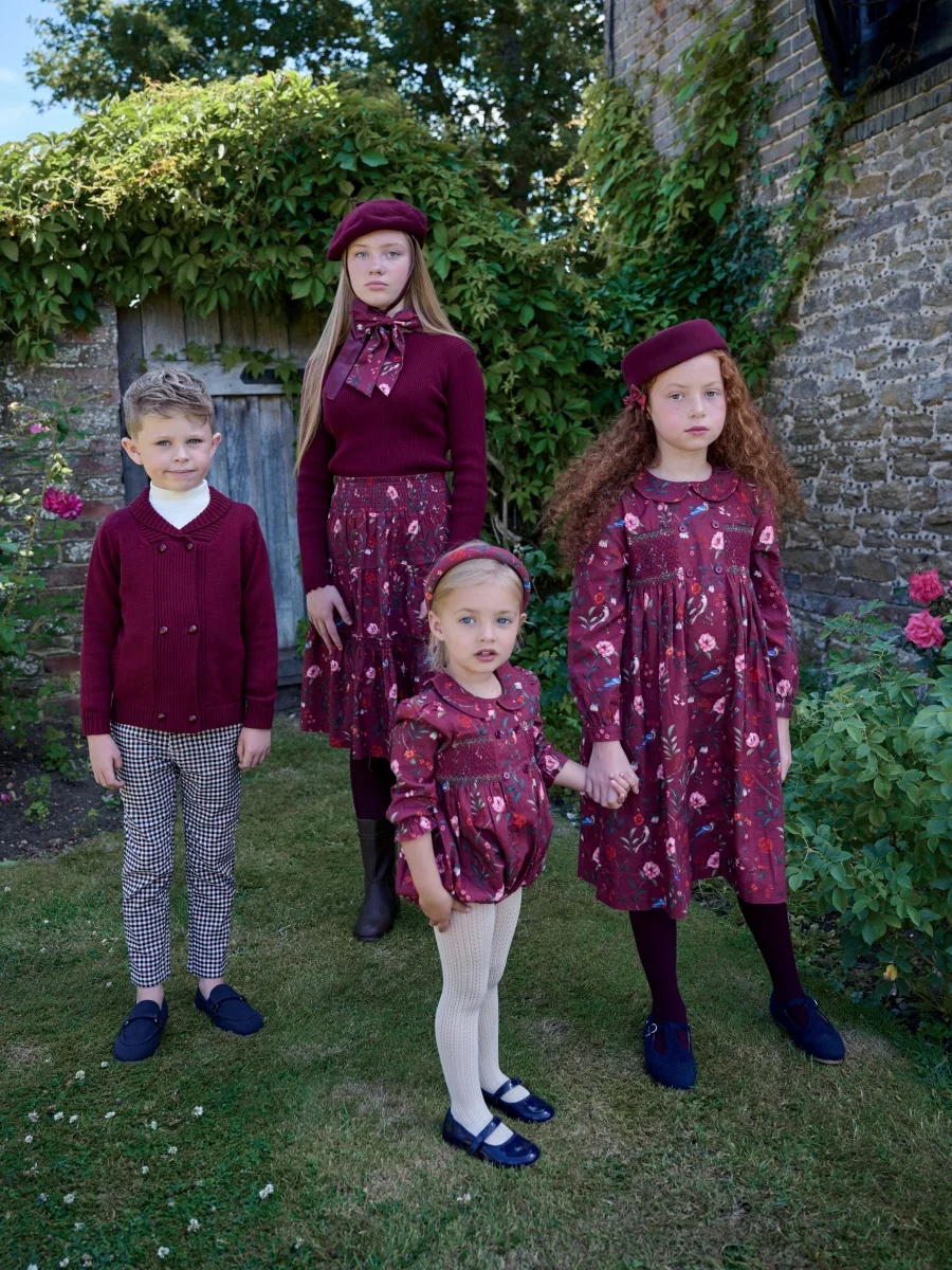 AS AW25 Burgundy Collection shabbos cotton print Smocking dress check shirt soft wool knitting familly match clothes boys girls  Read more