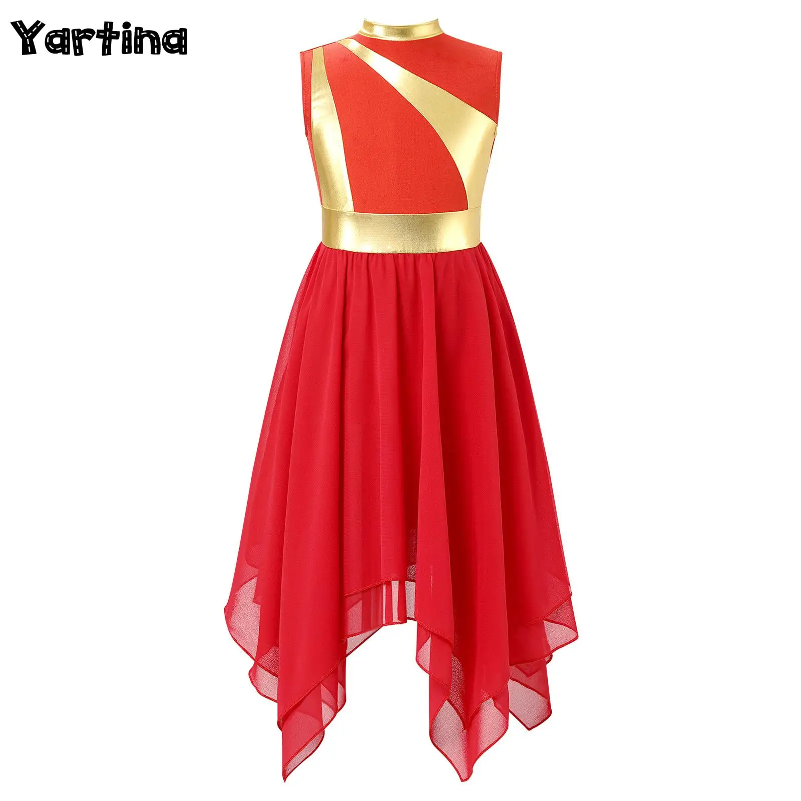 Kids Girls' Metallic Color Block Contemporary Praise Dance Dress Irregular Hem Choir Tunic Worship Praisewear